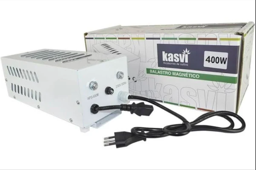 El Balastro 400W de Kasvi es un producto que sirve para conectar las lámparas de alta presión de sodio (HPS) y haluro metálico (HM), Ya que transforma y mantiene un flujo estable de la corriente y la transforma en watts. Además, es fácil de usar e ideal para espacios de cultivo de 100x100cm.