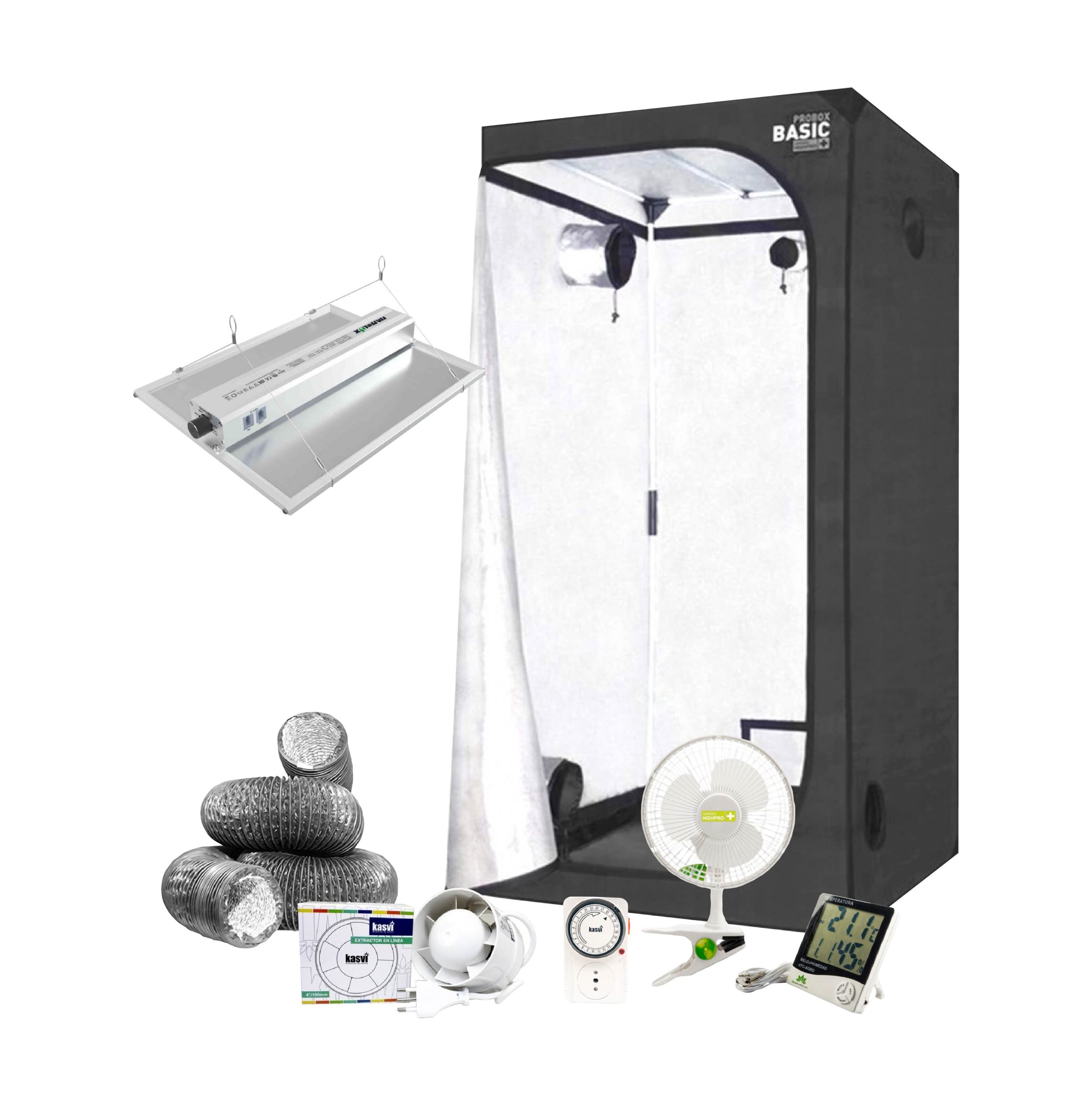 Diseñado para cultivar de 1 a 4 plantas con total comodidad, este kit incluye todos los implementos necesarios para un cultivo exitoso. Los componentes de alta calidad garantizan un entorno seguro y óptimo para el crecimiento de tus plantas.