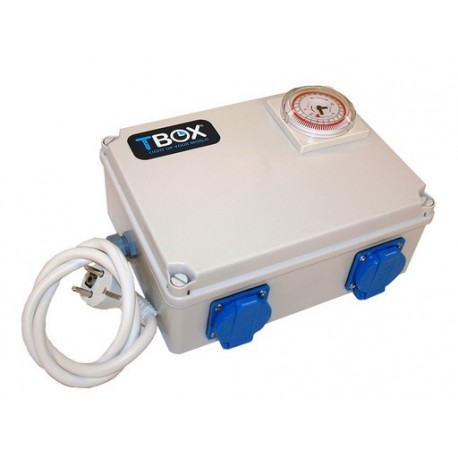 El modelo TBOX 4, está diseñado para soportar la carga de cuatro accesorios de 600 W. ó seis de 400 W.Características técnicas:Medidas: 241 x 180 x 95 mm. (largo x ancho x alto). Potencia máxima admitida: 4 accesorios de 600 W ó 6 de 400 W. Voltaje: 230 V / 50 Hz. Temporizador analógico con maniobra mínima de 15 minutos. Protección IP40.